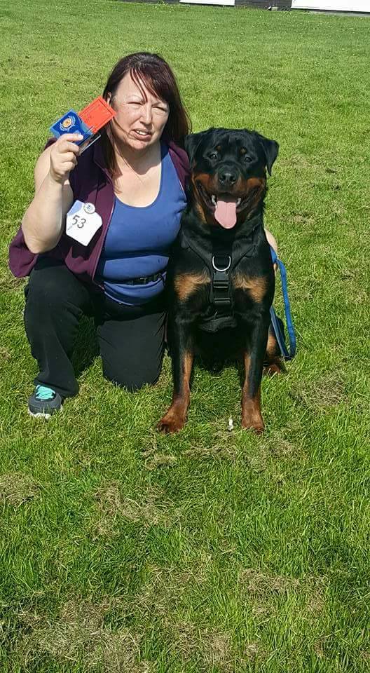 Success for Sue and shelties with third place in mixed brace and with Siri came second in the run-off . Also Maria and Raffi who won his first ever obedience competition at the Southwest Rottweiler open breed show.