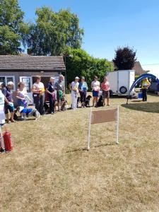 Pre-beginners 2nd Christine Towler and Katy, 4th John Kenny and Roo, 5th Bryony and Cully (picture of line-up below).